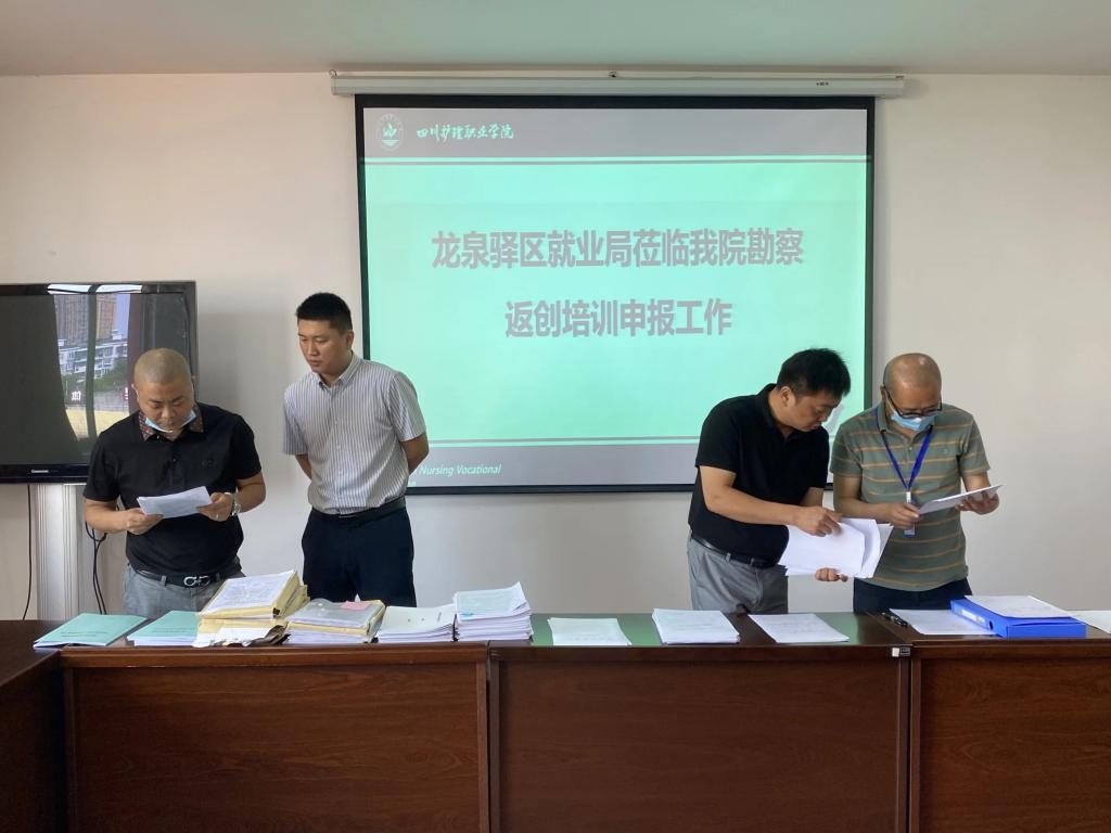 为满足城乡劳动者多元化的创业培训需求,支持劳动者创办经营实体,进一步推动创业促进就业工作,落实成都市人力资源和社会保障局《关于印发职业技能提升行动相关实施细则的通知》要求,6月17日,成都市龙泉驿区就业局培训科黄东科长、章波副科长一行到学院对我院申报“成都市返乡创业培训”项目进行现场勘察、座谈交流和资料检查。