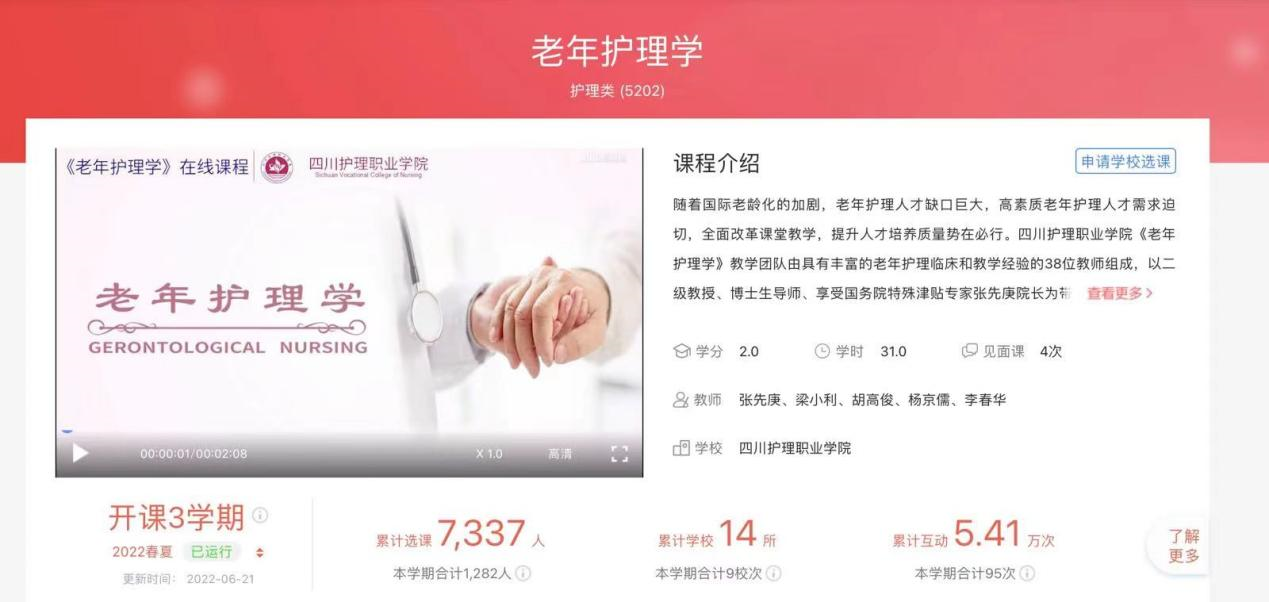 近日,四川省教育厅发布了《关于公布“十四五”首批职业教育精品在线开放课程认定结果的通知》(川教函〔2022〕251号)文件,我院《基础护理技术》《老年护理学》《做自己的心理专家》3门课程被认定为四川省“十四五”首批职业教育精品在线开放课程,《母婴护理技术》被认定为培育课程,4门在线开放课程的认定充分展现了学院课程建设、专业建设的优秀成果。