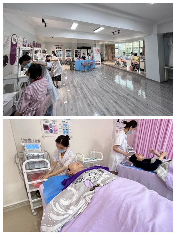 活动中,医学美容技术专业学生娴熟操作、热情周到,高度还原医美行业项目预约、咨询及服务流程,为师生员工们进行了面部护理、身体护理、背部经络疏通、小气泡深层清洁等美容服务项目,带来了舒适、美丽的全新体验。