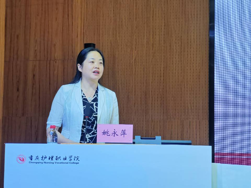 会上,姚永萍副院长作了题为《构建多维协作共同体,深度推进产学研一体化》的主题报告。具体阐述了职业教育政策与职教的适应性,重点分享了我院的办学优势与特色、产教融合深度推进情况及发展方向。她指出,我院紧跟国家职业教育相关政策,深入推进校企合作、产教融合,积极建设技术技能人才培养高地和创新服务平台,打造新时代卫生健康服务人才培养典范,助力健康中国、健康四川建设。