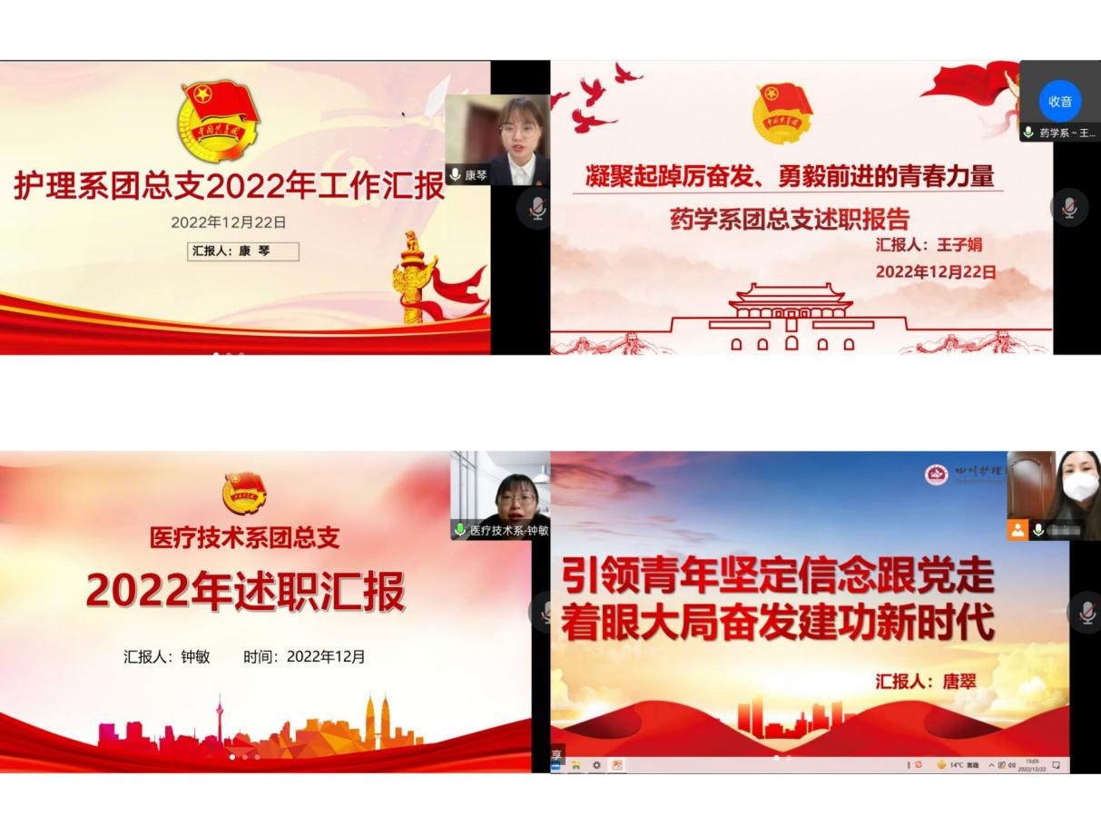 4个系团总支书记分别从思想政治引领工作、共青团组织建设、社会实践与志愿服务活动、团的宣传与理论研究、获得的荣誉和奖励等方面依次述职汇报2022年度共青团工作,并就一年来工作中遇到的难点和存在的不足进行了总结和交流讨论,对2023年的主要工作进行了初步规划与展望。