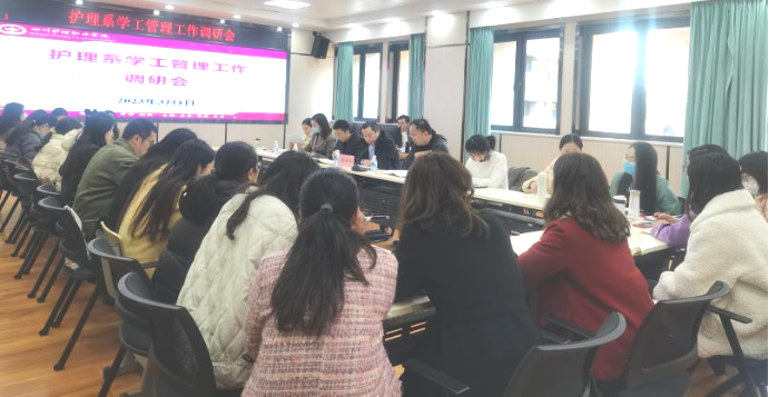 为做好学院学生安全稳定工作和了解学院两校区学生管理情况,3月1日下午,学院党委副书记彭博文深入护理系开展学工管理工作专题调研,学生工作部、护理系相关负责人和学工管理老师、全体专兼职辅导员共计40余人参加了会议。会议由学生工作部副部长申洋主持。