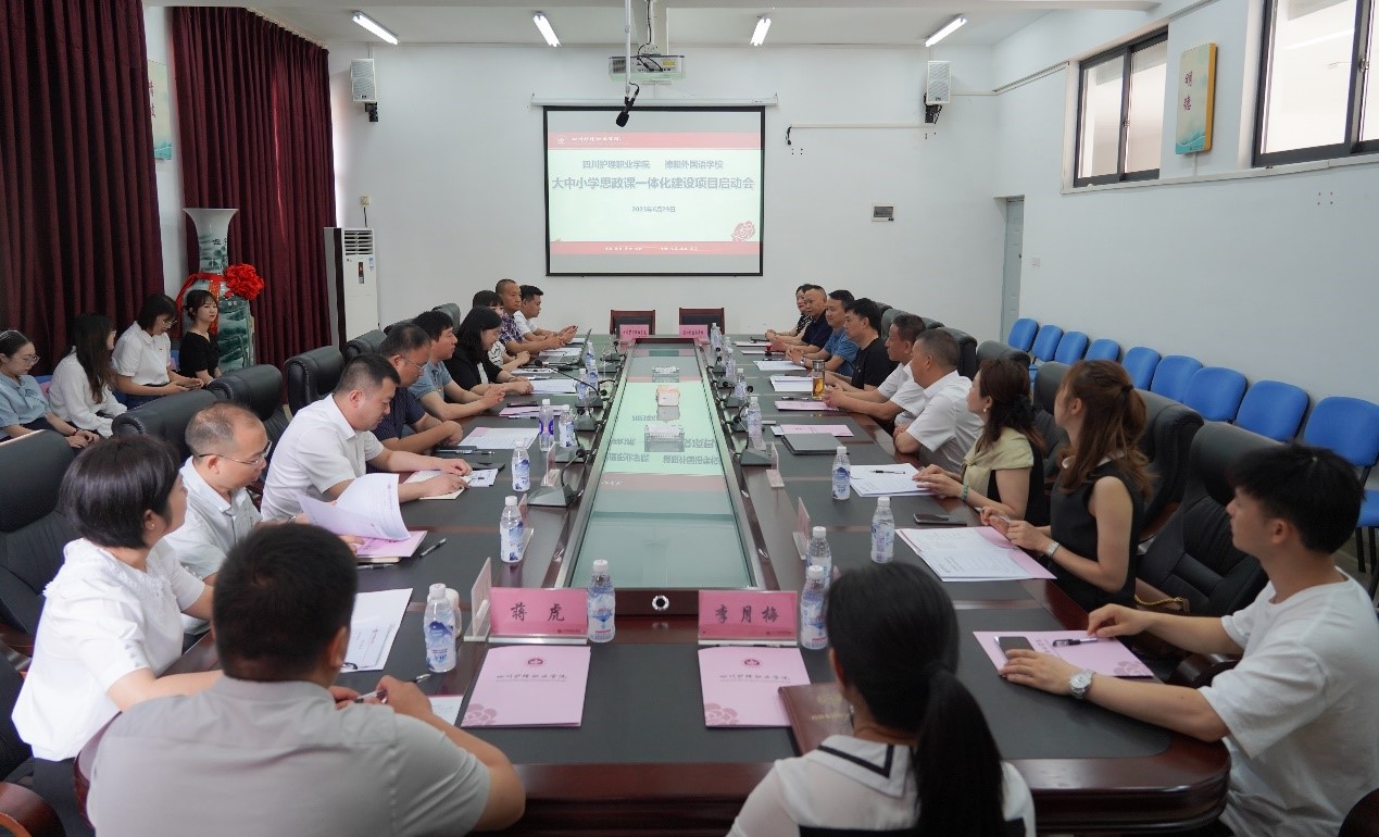 为充分发挥思政课立德树人的关键作用,全面增强思政育人效果,6月29日上午,我院与德阳外国语学校于德阳校区召开大中小学思政课一体化建设项目启动会。学院党委副书记彭博文,副院长梁小利,德阳外国语学校党委书记、校长何军,副校长董涛出席会议, 会议由梁小利主持。