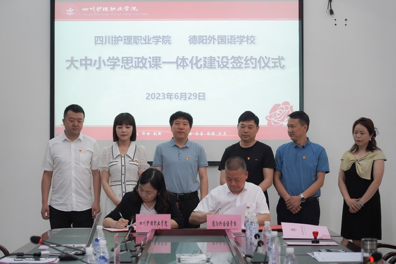 学院党政办、宣传部、教务处、学工部、护理系、思政部、基础部、健康培训中心等相关部门负责人、思政教师代表,德阳外国语学校教导处、德育处等相关部门负责人参加了会议。