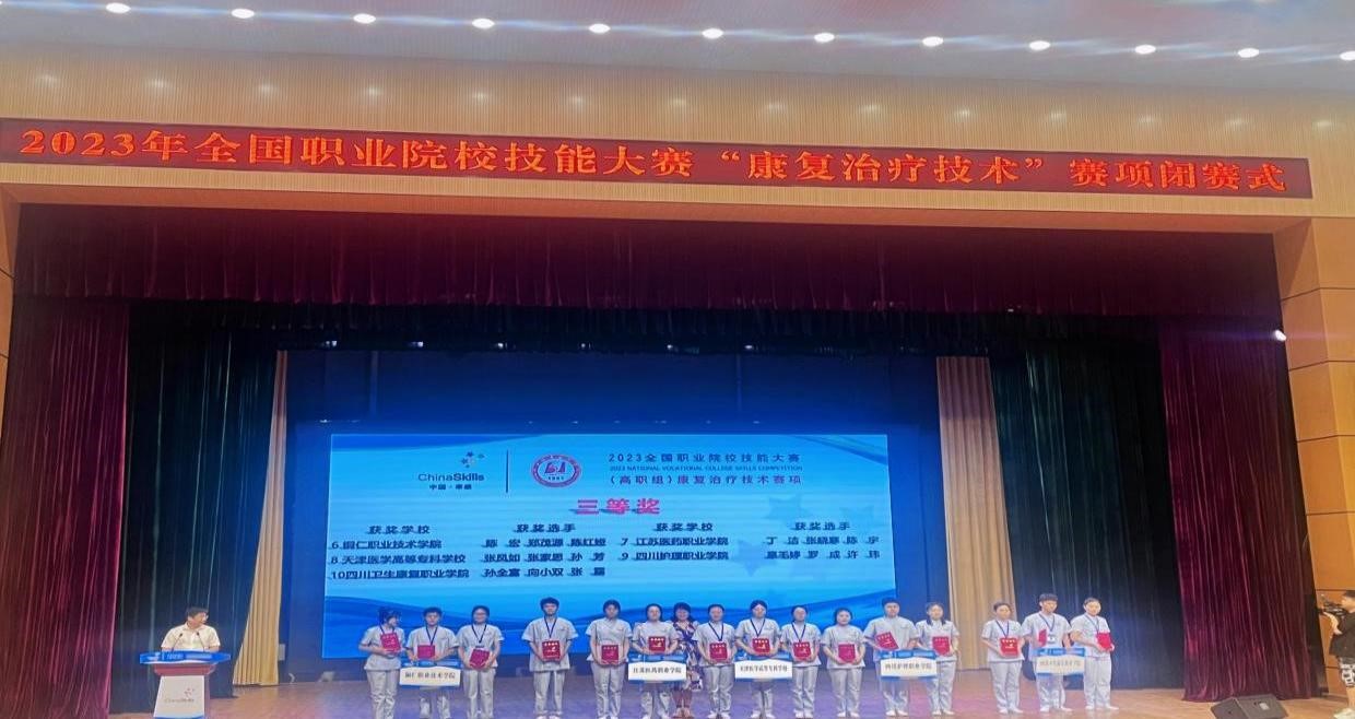 7月28日-30日,2023年全国职业院校技能大赛(高职组)康复治疗技术赛项在湖北孝感举行。本次大赛共有来自全国53所院校的159名选手同场竞技,我院康复技术系辜毛婷、罗成、许玮三名同学组成的参赛队,在郑爽、李梦晓等多名老师的指导下,经过激烈角逐,喜获大赛三等奖。