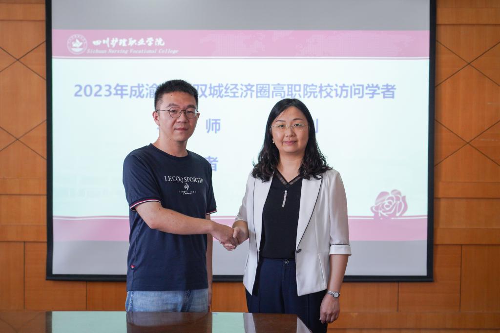 张先庚院长感谢3位访问学者选择川护、信任川护。她指出,学院高度重视成渝地区双城经济圈建设工作,精心策划本次访问学者工作。我院将会努力营造良好的学习工作氛围,制定完善的访问学者培养方案,协同做好保障与服务工作。她强调,要以成渝地区双城经济圈建设为总牵引,抢抓机遇,贯彻落实区域人才政策,共建共享教育资源,互学共鉴人才引育经验,联合培育职教领域高层次领军人才。同时,学院作为成渝地区双城经济圈现代护理教育联盟牵头单位,将继续彰显大爱情怀,做好示范引领,在中国式现代化的新征程中书写好职教新答卷,共同助推成渝地区双城经济圈大健康产业和职业教育高质量发展。