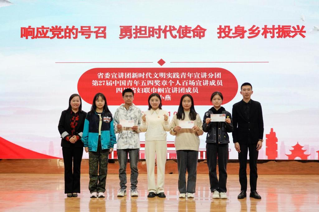 邓小燕指出,当代青年就是要“自找苦吃”,练就过硬本领;要弘扬美德,在乐于奉献中彰显人生价值;要坚定梦想,书写人生华章。她强调,她的成功归根到底是党和国家的政策好。青年学生应自觉响应党的号召,投身祖国和人民最需要的地方去;应坚定人生理想,保持奋斗激情,在平凡的岗位上作出不凡业绩。同时,她结合自身投身乡村振兴经历,呼吁青年学生到西部去、到基层去、到祖国和人民最需要的地方去,为推进健康中国、健康四川建设贡献青春力量。