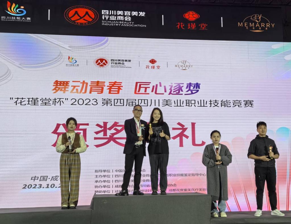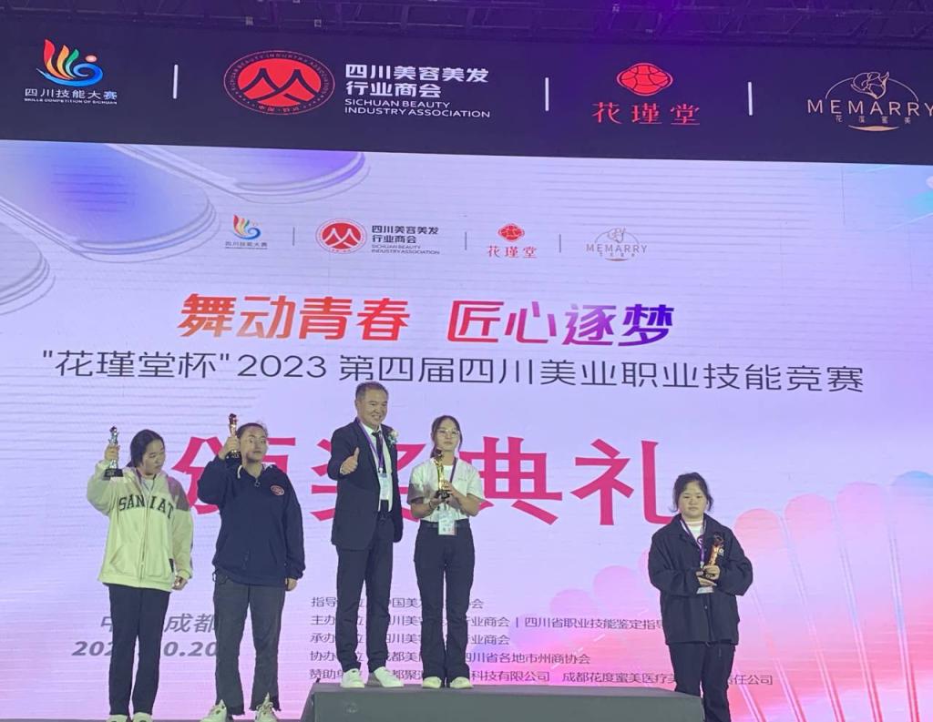 本次技能竞赛本次竞赛由中国美发美容协会指导,四川省职业技能鉴定指导中心和四川美容美发行业商会联合主办。经过前期的刻苦训练,参赛师生与来自四川省21个地市州近200名选手同场竞技。经过激烈角逐,医学美容技术专业教师王绍婷获得美容全能职工组金奖,医学美容技术专业学生刘朝仙获美甲项目金奖,任俊获美容项目银奖,莲洁、尹香获美甲项目银奖,田源、张玉婷、贺蓝莉、刘灿、彭首政获美容项目铜奖。