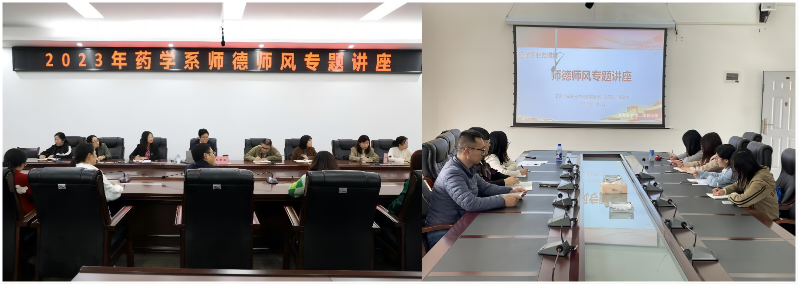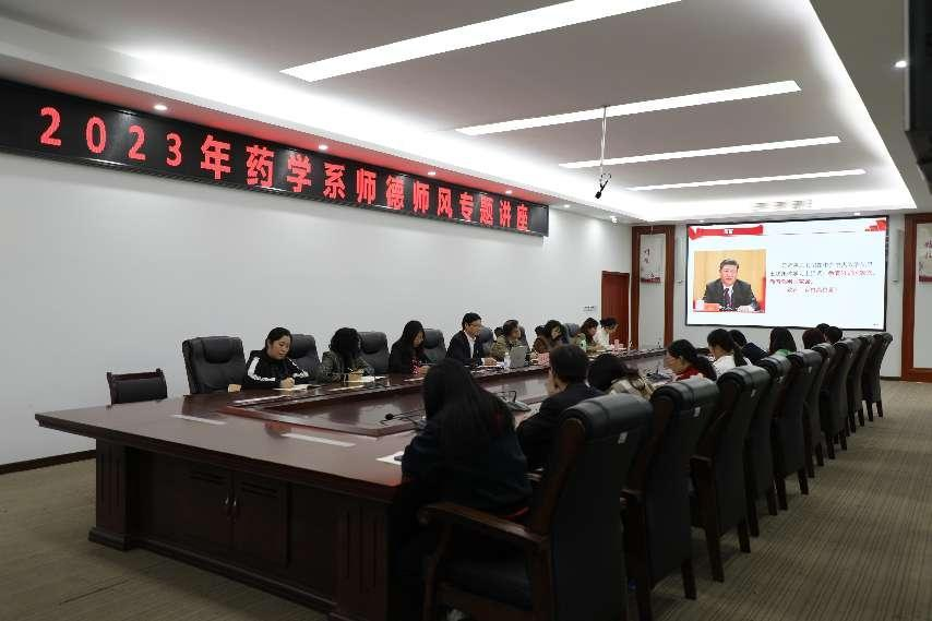 陈劲松副院长围绕“教育强国 我们有担当”“立德树人 我们有答卷”“为人师表 我们是表率”等内容进行系统阐释和讲解。围绕“培养什么人、怎样培养人、为谁培养人”教育的根本问题,结合药学系实际,深入思考如何落实“立德树人”的根本任务,如何建设一支师德高尚、业务精湛、结构合理、充满活力的高素质专业化教师队伍。他指出,我们要深入学习习近平总书记对广大教师的殷切期望,同时严格落实“三个牢固树立”“四有”好老师,“四个引路人”“四个相统一”“六个要”等标准和要求,热心从教、精心从教、长期从教、终身从教。