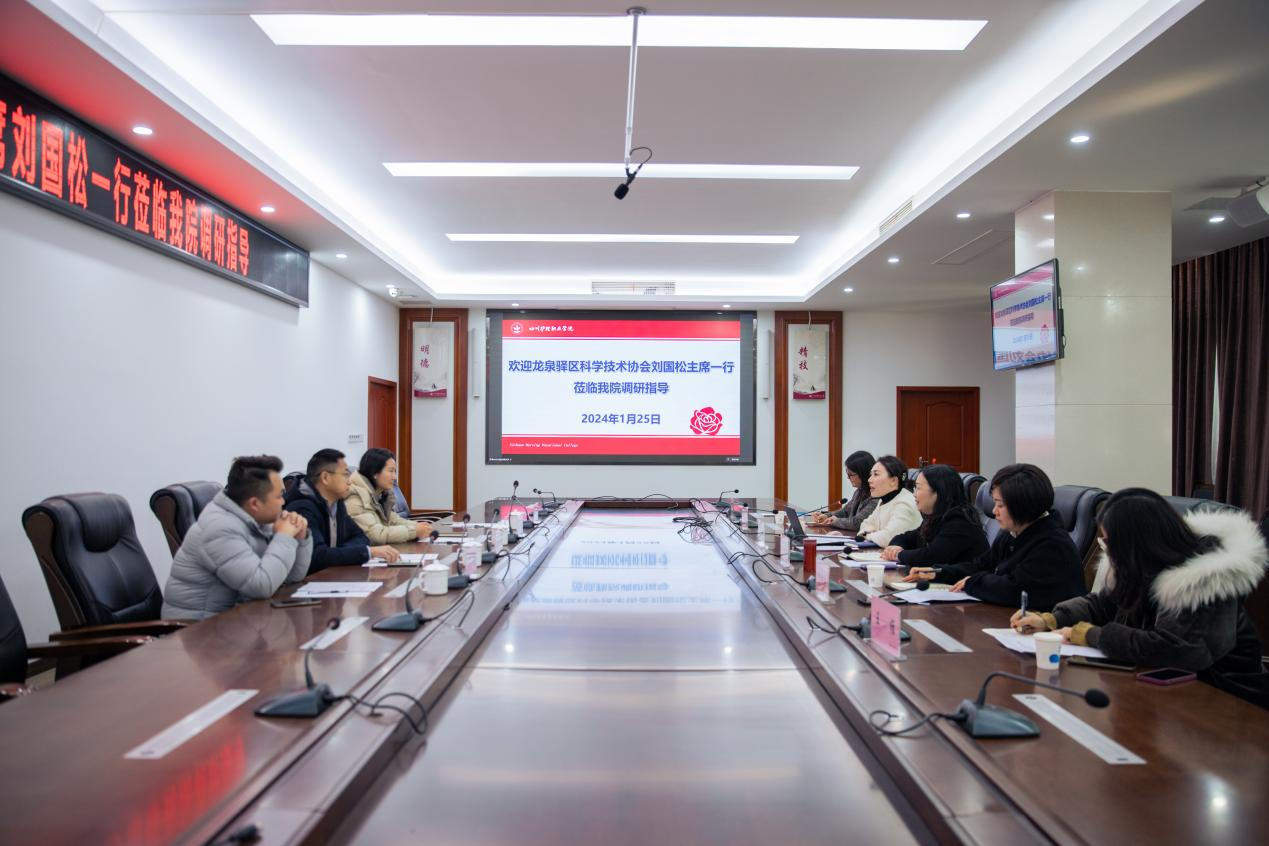 1月25日,龙泉驿区科学技术协会主席、新经济和科技局党组成员刘国松一行到我院成都校区调研指导。副院长梁小利、学科科研处(科普办公室)及基础部等相关部门参加调研。