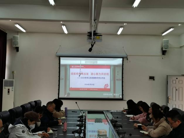 党委副书记彭博文作指导讲话,他对2023年学工系统工作亮点、取得的突出成绩表示肯定,希望2024年学生工作做到早谋划、早部署、早实施、早落实。从提神、提速、提质、提劲四“提”对全体学工人员在新学期如何更好进入工作状态提出四点建议。对全体学工人员如何更好开展工作提出五点要求,一是要在自身学习上下功夫,不断学习新知识、新思想,提升写作技能水平;二是要在思考能力上下功夫,善于提炼、总结和复盘;三是要在勇于实践上下功夫,抓落实、出实招、见实效;四是要在善于创新上下功夫,做到转变思维模式,坚持守正创新;五是要在追求卓越上下功夫,以高标准、严要求,做到行稳致远。最后,他特别强调,大家要时刻绷紧安全这根弦,以安全为底线,全力保障学生安全,将学工工作做好、做出彩。本次会议是收心会、工作部署会,更是动员会,确定了工作目标,明确了工作重点。新学期,全体学工人将时刻保持“拼”的精神、“闯”的劲头、“创”的勇气,争荣誉、争名次、创品牌,全面提升育人质量,为学院“双高”建设和高质量发展做出更大贡献。