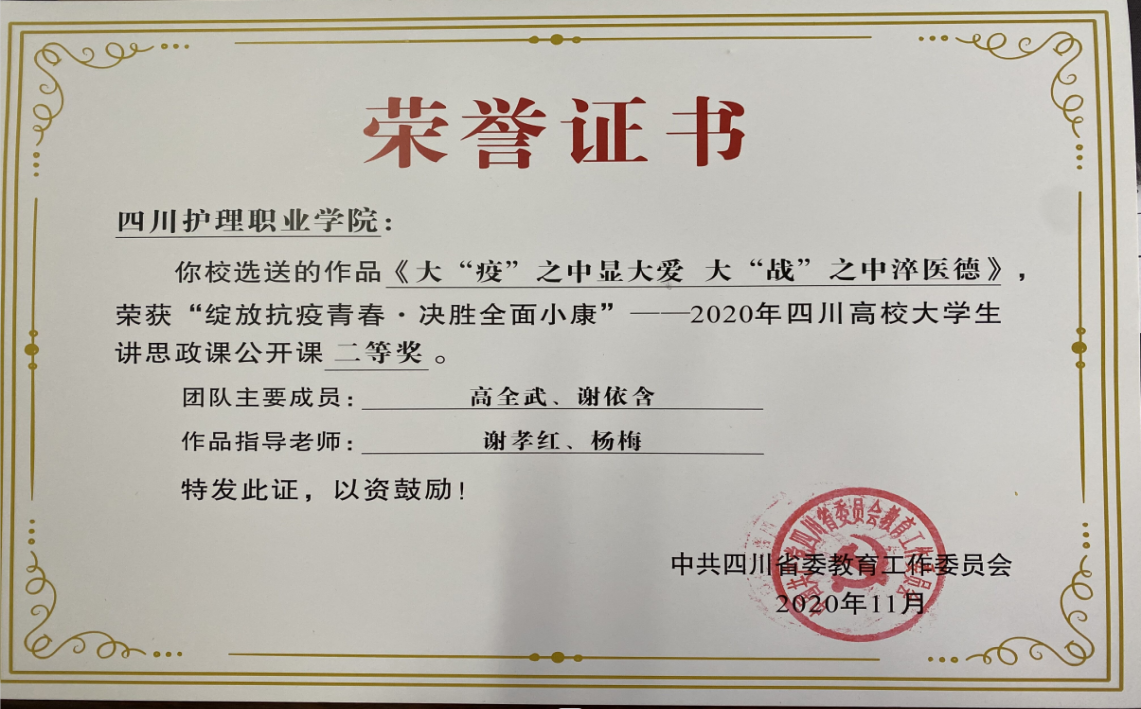 学院党委高度重视思政课建设,严格落实思政课建设“一把手工程”,党委书记直接联系马克思主义学院,为思政课建设定向导航。落实思政课听、评、督课制度和院领导带头讲思政课制度,学院主要领导每学期讲思政课4次以上。完善思政课程体系建设,学院现开设思政必修和选修课程近20门,形成以核心课为引领、必修课为主干、选修课为拓展的思政课建设格局。严格按照习近平总书记提出的“八个相统一”要求,坚持守正与创新并举,推进理论课堂、实践课堂、网络课堂“三课”融通,不断增强思政课的思想性、理论性和亲和力、针对性。拓展思政课教学资源,建有四川卫生党史馆等7个校外实践教学基地和360°沉浸式思政教学体验中心等2个校内实践教学基地,为2000余人提供志愿讲解服务,真正做到把思政小课堂与社会大课堂有机结合起来。积极推动课程的数字化赋能,建有省级“课程思政”示范课程2门,精品在线开放课程1门,院级“课程思政”示范课程3门,线上线下混合式课程5门。积极构建“大思政课”格局,与德阳外国语学校签订大中小学思政课一体化建设协议,迈开了思政课手拉手校地合作建设步伐。近年来学院思政课教师指导学生参加全民国防教育万映计划公益展映活动,获国家三等奖;指导大学生讲思政课和微电影活动荣获省级一等奖1项,二等奖4项,三等奖1项。特别是思政实践教学改革创新成效显著,依托校内外实践教学基地,实现“知识传授、能力提升、职业担当、价值引领”四位一体的特色思政实践教学目标。打造的长征行品牌思政实践教学活动多次被省教育厅、省卫健委官微宣传报道,思政实践教学改革成果荣获四川省职业教育教学成果二等奖。