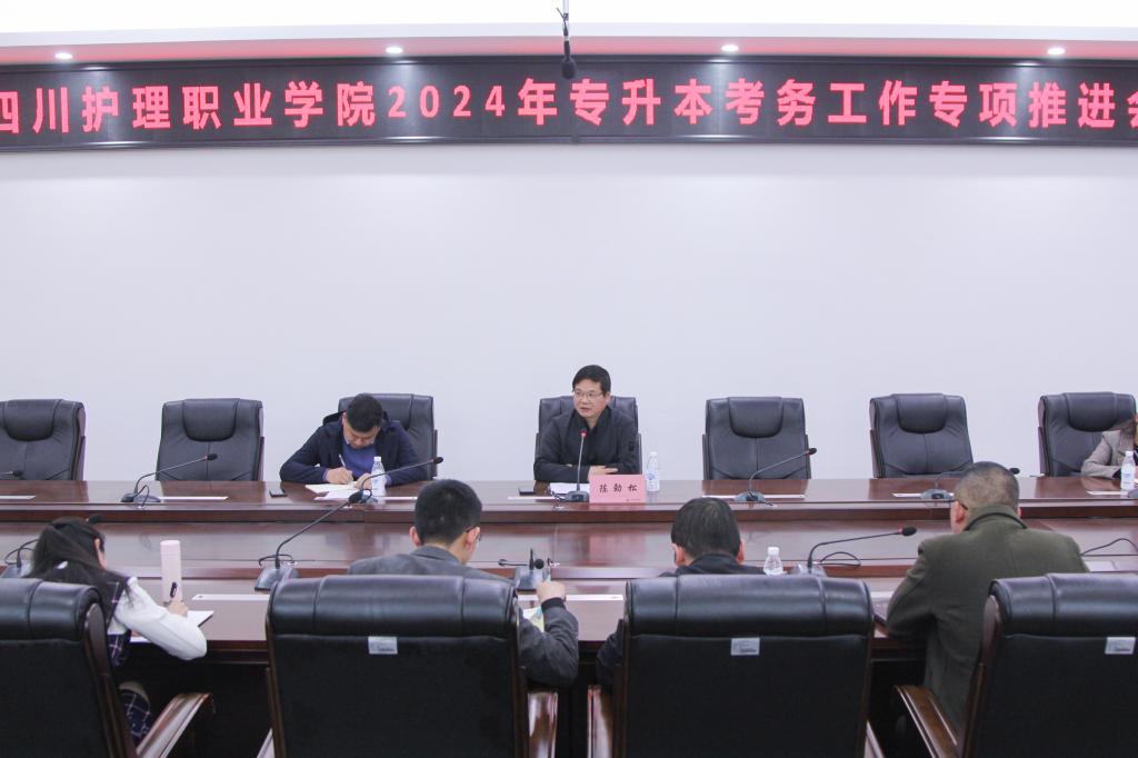 为深入贯彻落实我省2024年专升本“五统一”首考考务工作培训会精神及相关文件要求,确保我院专升本考试组织工作安全有序顺利进行,3月28日,专升本考务专项推进会在成都校区召开。学院副院长陈劲松出席会议,相关部门负责人参会,会议由教务处处长周佳丽主持。