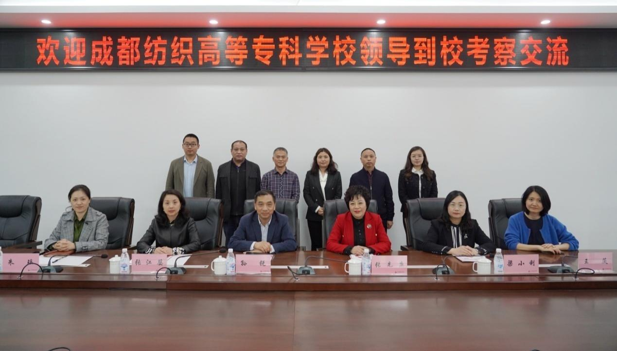 4月10日,成都纺织高等专科学校校长孙锐、纪委书记张江婴一行5人到学院成都校区考察交流,学院院长张先庚、副院长梁小利及相关部门负责人参加考察交流。