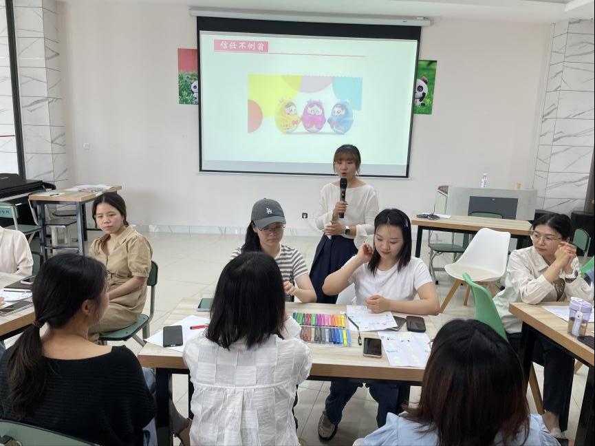 活动现场气氛热烈而温馨,辅导员们积极参与到各项精心设计的活动环节中。通过“九宫格自我介绍”的方式去探索自我,了解自我。同时也教给大家本方法还可以应用于和班级同学们的谈心谈话过程中,通过发现共同爱好的方式拉近学生与老师的距离。通过“信任不倒翁”的游戏,用团体合作的方式让大家感受到团体的力量,感受放松与支持。通过“幸福树”黏土创作活动帮助辅导员老师们进行自我探索,发现自己的幸福点,共同创作让自己感到幸福的内容。