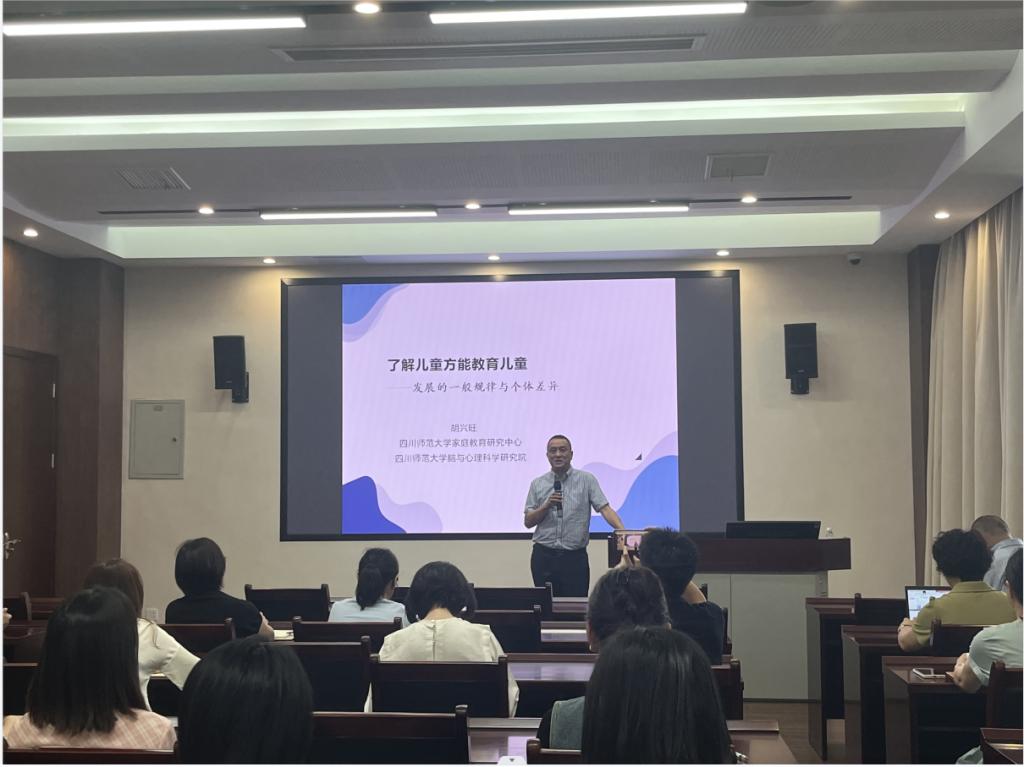 为关心关爱教职工及其子女的健康成长,6月6日,学院工会、妇委会邀请四川师范大学家庭教育研究中心主任胡兴旺副教授到校开展“了解儿童方能教育儿童-发展的一般规律与个体差异”的家庭教育专题讲座。学院教职工80余人参加。