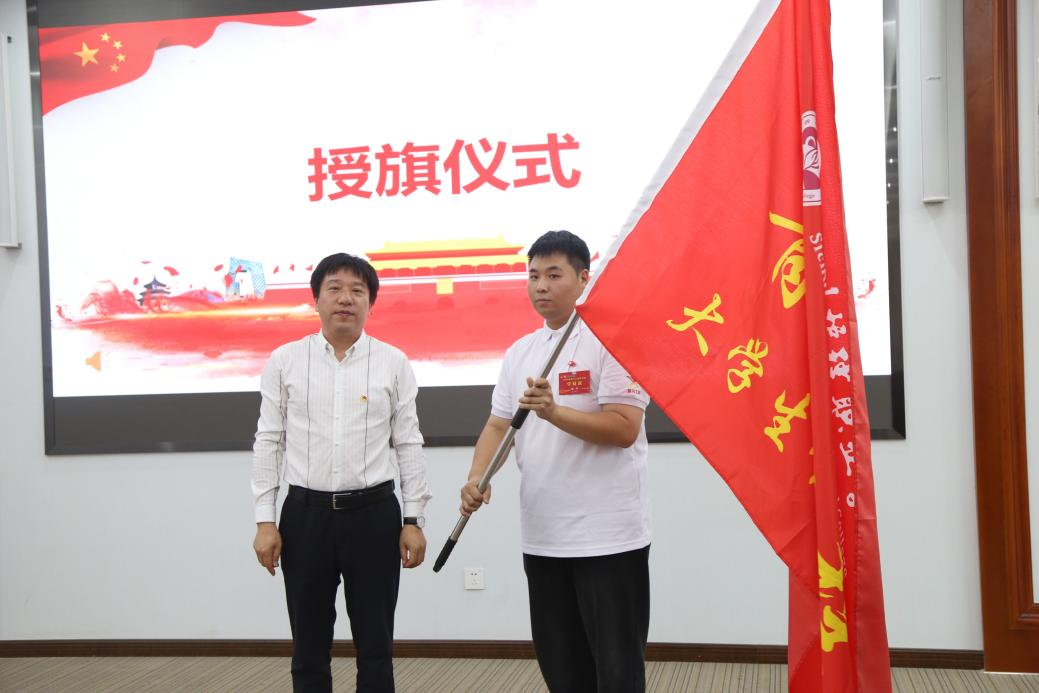 学院党委副书记彭博文为本期“青马工程”培训班授旗。