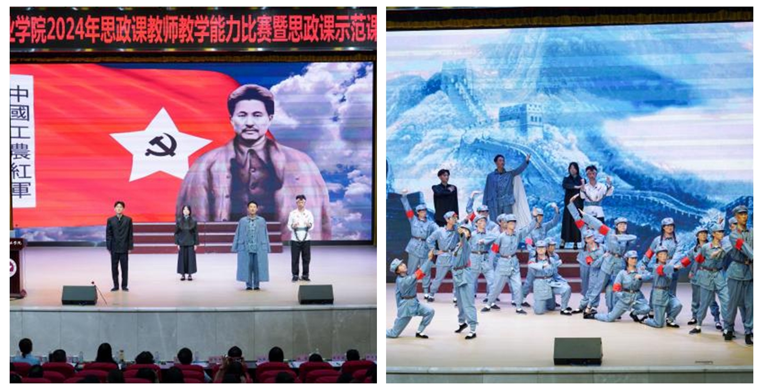 比赛由学院青马社师生原创、基础部唐翠老师指导的思政情景剧《可爱的中国》拉开序幕。进入决赛的10名思政课专兼职教师围绕《习近平新时代中国特色社会主义思想概论》等5门思政课程依次进行教学展示。参赛教师以精炼随和的语言表达、科学多样的教学设计充分彰显学院思政课教师的理论素养和教学水平。