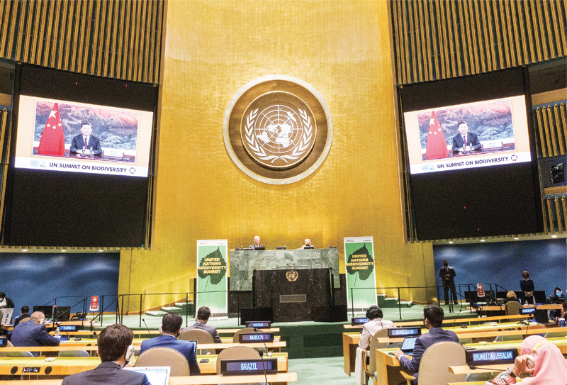2020年9月30日,国家主席习近平在联合国生物多样性峰会上通过视频发表重要讲话。新华社发