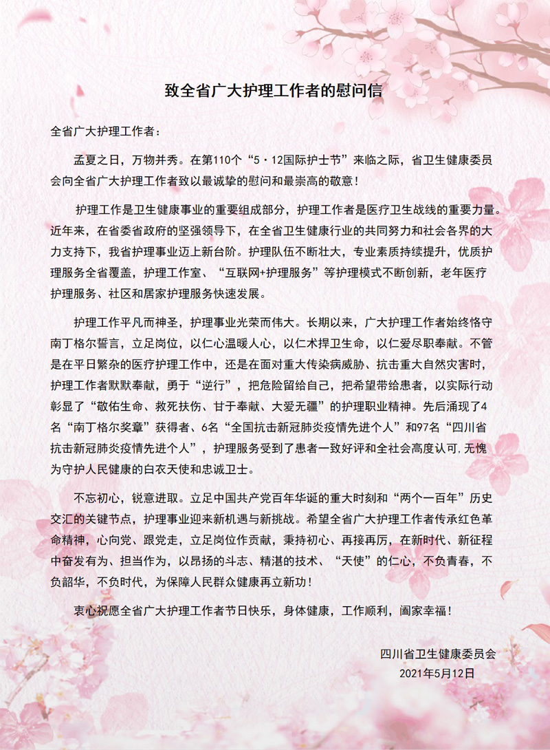致全省广大护理工作者的慰问信