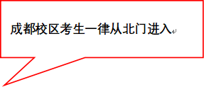 1.考试期间,成都校区校外考生均从北门进入(详见成都校区地图),德阳校区考生从正大门进入;考生在校门需按保安要求查验身份,进入考区后及时到达指定考场,考试结束后有序离场。