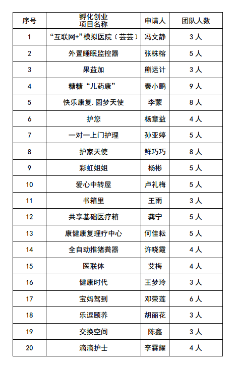 2017年6月23日,我院邀请校外专家和龙泉驿区就业局工作人员对园区第二批64个创新创业申请入驻项目进行评审,其中56个项目均通过入驻评审。2017年7月7日,56个项目正式入驻园区,经过3个月以上的入园孵化,现有以下项目仍在运营,学院拟向上级部门申报学生创业项目创业孵化补贴,拟申报补贴项目名单如下。