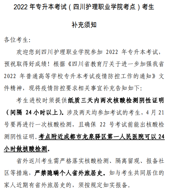 2022年专升本考试(beat365官方网站考点)考生补充须知