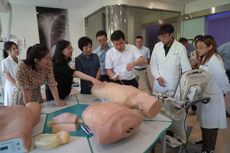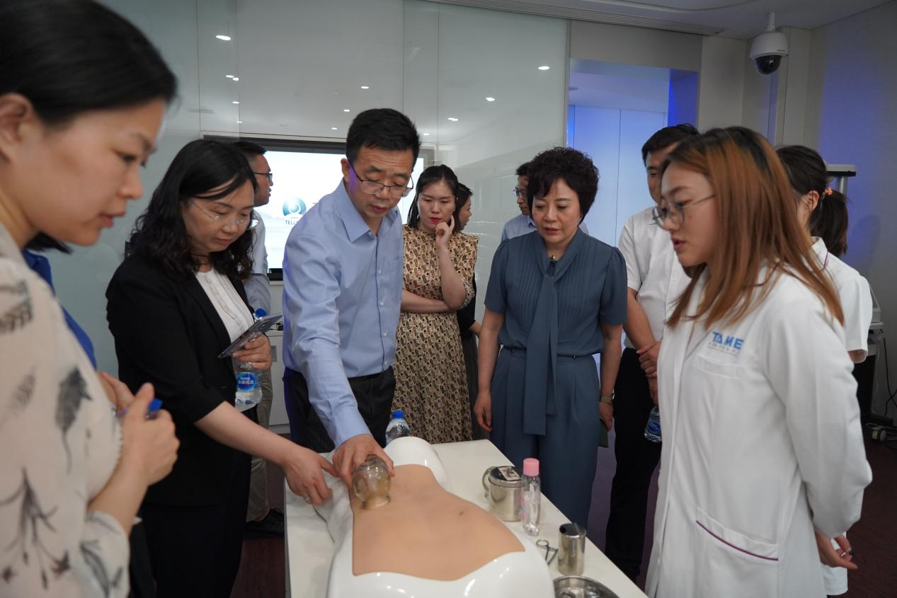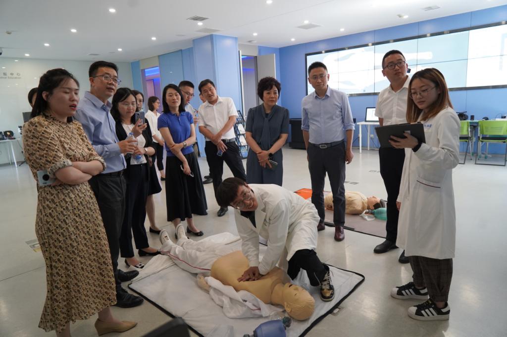 在天津天堰科技公司总经理刘雁飞陪同下,张先庚一行来到该公司技能中心和科普中心,全面深入考察急救、护理、康复等仪器设备的智能化、信息化研发情况。beat365官方网站、天津医学高等专科学校、天津天堰科技公司共同签署了全国职业教育教师企业实践基地研发创新合作协议,为开展职业教育产品研发、课程开发、教学改革、智能研发等领域的科学研究搭建了良好平台。三方将精诚合作,携手打造卫生健康领域产教融合、科教融汇新标杆。