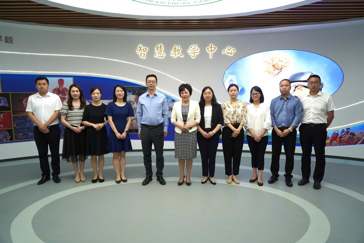 为贯彻落实党的二十大和省委十二届二次全会精神,扎实推进学习贯彻习近平新时代中国特色社会主义思想主题教育,助力新一轮“对标竞进、争创一流 ”活动落地落实,深化产教融合、科教融汇,全面推动学院内涵式高质量发展,6月8日,学院院长张先庚一行11人,赴学院对标院校天津医学高等专科学校开展学习调研。天津医学高等专科学校党委书记陈振锋、副校长王庆及相关部门负责人陪同。