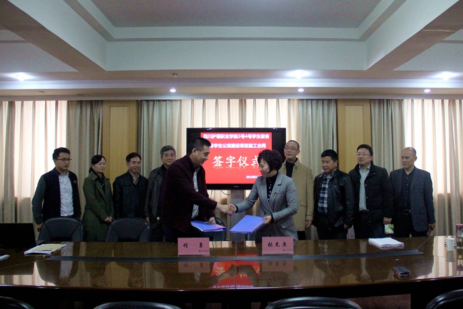 2016年11月14日下午4点,在龙泉校区三楼会议室举行了德阳校区3号、4号学生宿舍和1号学生公寓建设项目施工合同签订仪式,学院法定代表人、院长张先庚教授与施工单位(德阳市建业建筑工程有限公司)法定代表人程勇董事长在合同上签字。学院基本建设领导小组成员与施工单位项目经理等一同见证了这一历史时刻,标志着该项工程即将进入实质性施工阶段。