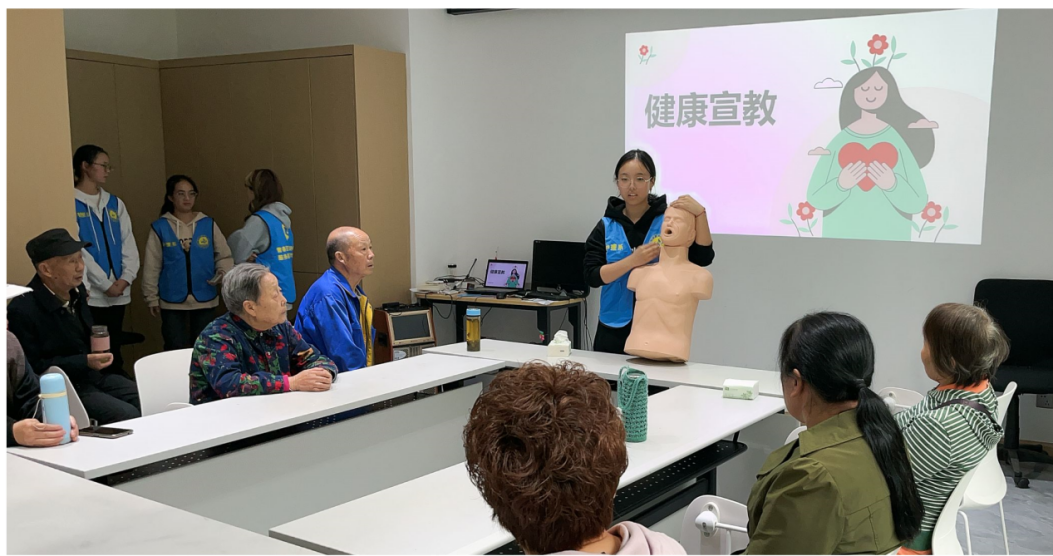 志愿者们充分发挥专业所长,为老人们测量血压、健康筛查、口腔健康知识科普、牙线使用等,并耐心地为老人们讲解日常保健知识,以实际行动表达了对老人们的关爱,展现出川护学子的奉献精神,为社会传递温暖与正能量。
