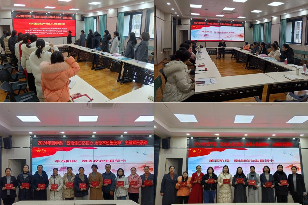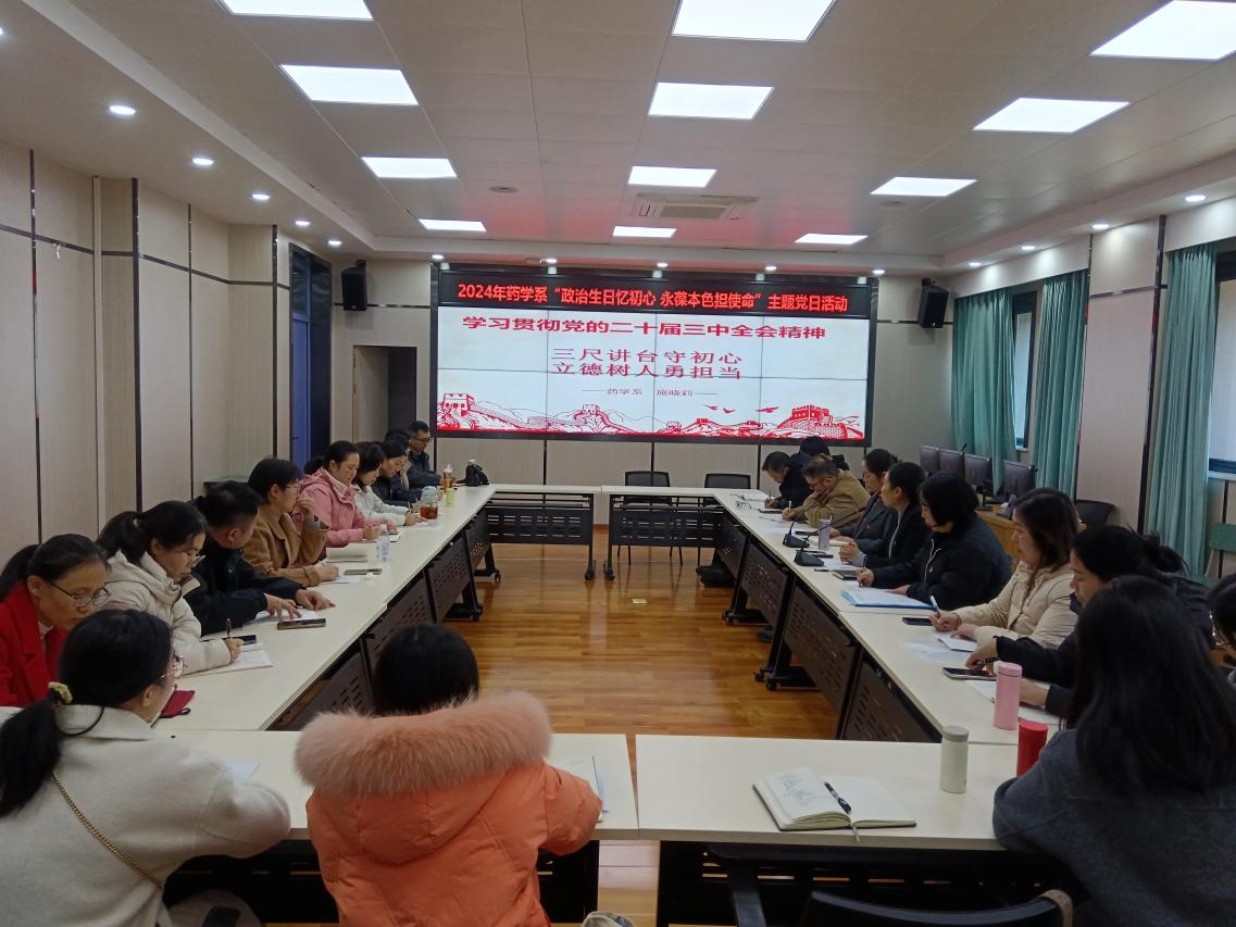 11月28日,药学系党总支在德阳校区护理实训楼会议室开展“政治生日忆初心 永葆本色担使命”主题党日活动。全体党员、入党积极分子参会,会议由党总支书记施晓莉主持。
