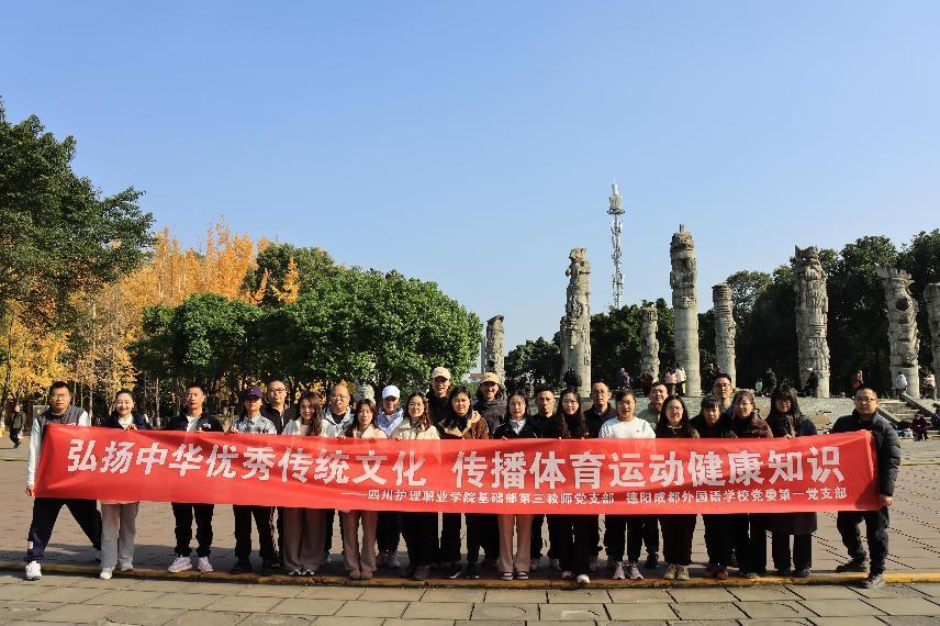 为学习贯彻落实党的二十届三中全会精神和四川省卫生健康大会精神,深入实施健康中国行动,12月5日,学院基础部第三教师党支部与德阳成都外国语学校党委第一党支部在德阳石刻公园联合开展了“弘扬中华优秀传统文化 传播体育运动健康知识”主题党日活动,支部党员及现场市民共50余人参加。