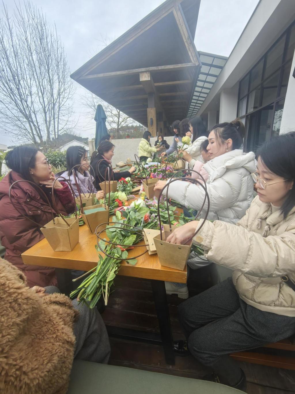 会后,全体党员在高槐村实地考察乡村振兴情况,参观高槐村网红乡村文创生活馆染云山房,了解“乡村文创+非遗+植物染+精品咖啡+特色民宿+亲子研学”发展模式,并开展花艺劳动体验活动。在体验乡村振兴发展成果的过程中,老师们纷纷表示要把高槐村的发展案例融入到课堂教学,积极引导学生传承中华优秀传统文化,为乡村振兴贡献力量。