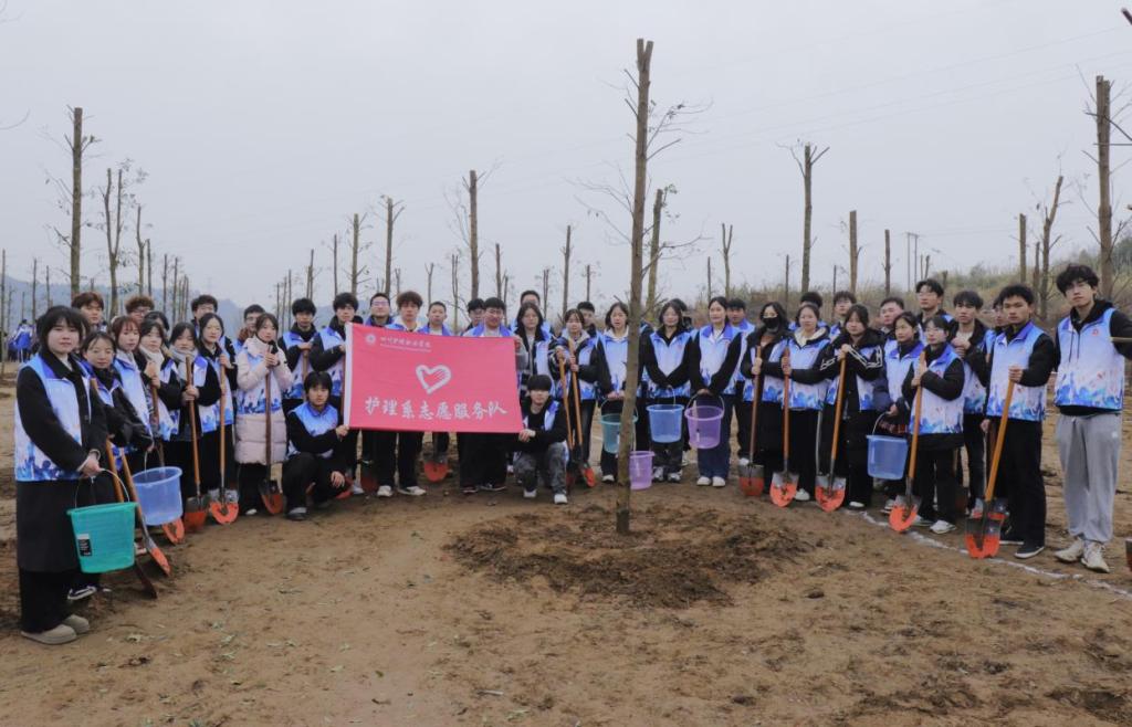 3月17日,德阳市2025年春季义务植树活动在旌阳区双东镇华强沟水库开展,学院护理系52名志愿者参加活动。