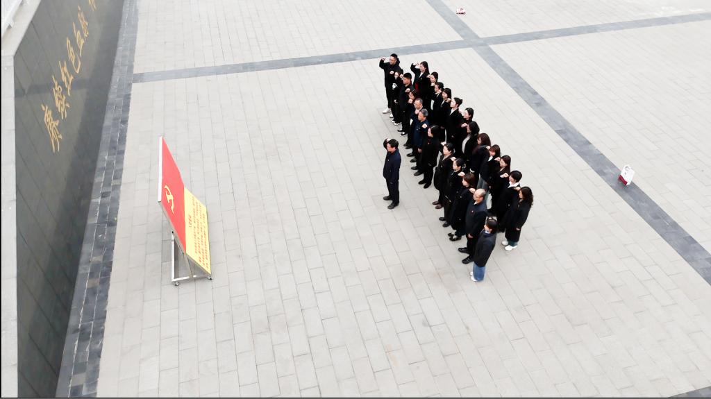 在革命烈士纪念碑前,全体党员整齐列队,庄严肃立,齐唱国歌、默哀并向英勇献身的革命先烈敬献花篮,表达对英雄烈士无限敬意和追思。