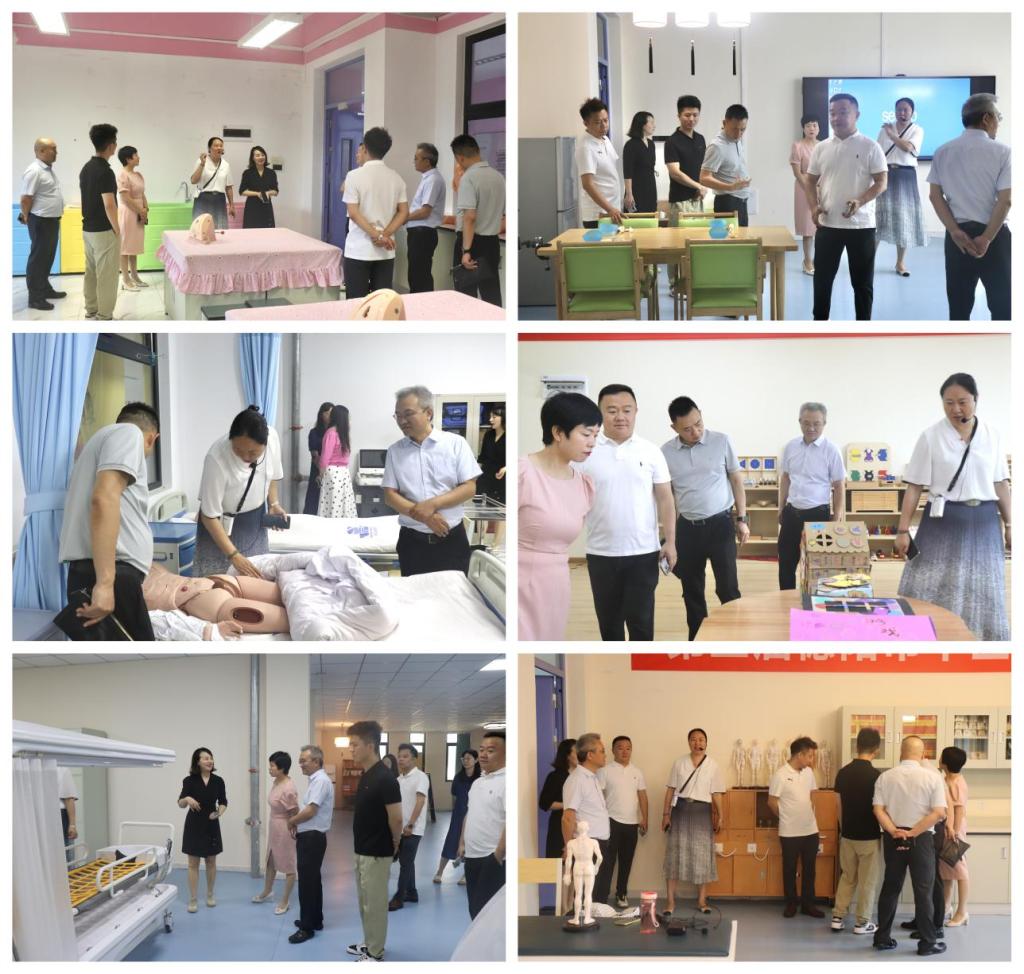 王小兵一行先后参观了德阳校区护理实训楼、母婴护理实训室、婴幼儿托育服务与管理专业实训室、老年护理实训室等。邓小利详细介绍了学院的办学理念、办学规模、专业构成、实验实训室建设等情况。
