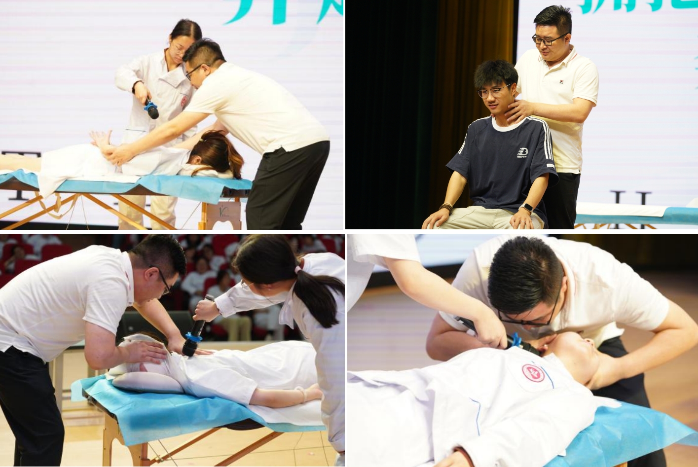 罗振国大师以"精益求精"诠释工匠精神内涵,用"十年磨一剑"阐述工匠职业要求,结合自身从业二十余载的经历和专业特色弘扬新时代工匠精神,号召师生用工匠精神浸润校园,用技能报国点亮青春。在技能展示环节,罗振国大师现场演示师门独创手法,邀请学生体验推拿技艺,其精湛技法引发阵阵惊叹。