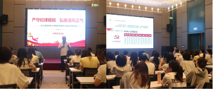 6月6日,护理系党总支书记黄鸷以“严守纪律规矩 弘扬清风正气”为主题,围绕中央八项规定精神、纪律意识和党风廉政建设为全体党员讲授专题党课。课上,黄鸷结合党内作风建设新形势,介绍中央八项规定精神学习背景,强调其对规范党员行为、推动党和国家事业发展的重要意义。通过典型案例,深入剖析违反中央八项规定精神在形式主义、官僚主义及享乐主义、奢靡之风方面的具体表现,以典型案例警示全体党员在工作中严守纪律、主动担当,在生活中勤俭节约、抵制奢靡之风,营造清正的教育环境。