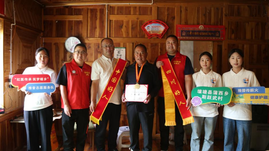在壤塘县宣传部门的引荐与安排下,服务队到壤塘县斯跃武村,通过与“中国好人”“四川省诚实守信模范”索木滚老村医的面对面交流,上了一堂生动的“初心课”。58年坚守,从青春到白发,这位高原上的“生命守护者”深情讲述当年为信守对乡亲们的承诺,放弃难得深造机会的选择。“只要村民有需要,我就要一直干下去”——这句朴实无华却重如泰山的誓言,队员们无不动容,深刻领悟到信念的力量与坚守的价值。