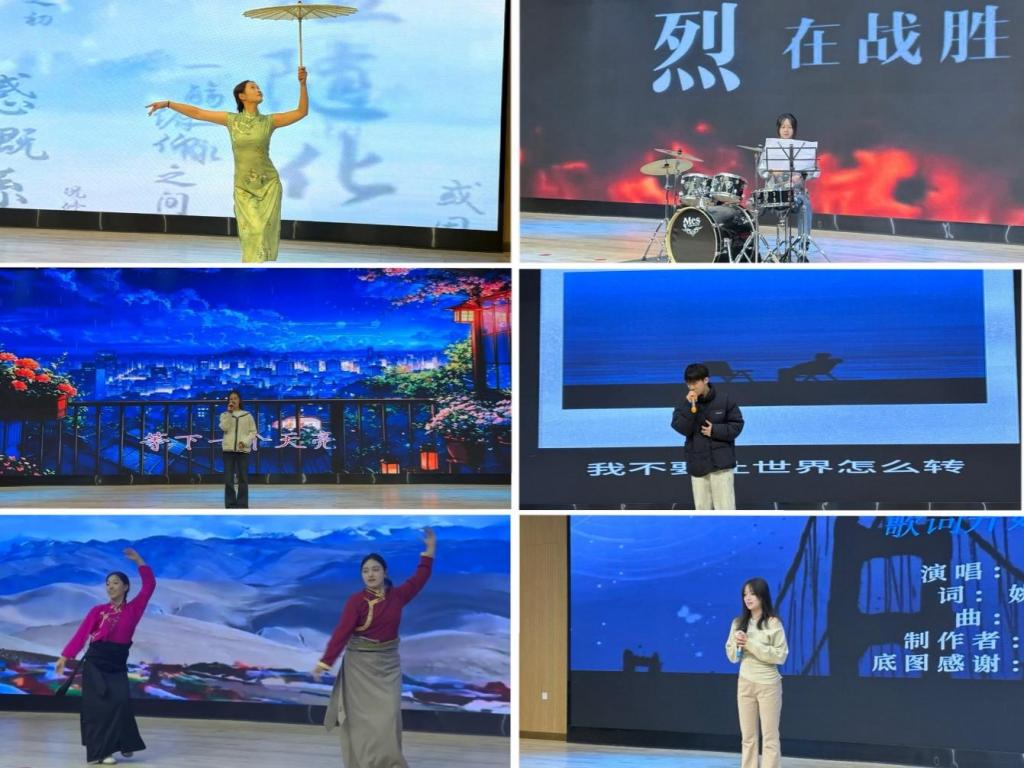 本届大赛节目形式丰富多元,涵盖了歌曲、舞蹈、器乐演奏等。器乐表演《逆战》以极具爆发力的鼓点引爆全场,舞蹈《兰亭序》韵味悠长,将古典婉约之美完美呈现,歌曲《雪域医途》、《平凡天使》紧密结合护理专业的特色与使命,将青春热忱与专业情怀融入艺术表达。节目既有专业度又充满感染力,赢得评委与观众的高度认可,现场掌声不断。