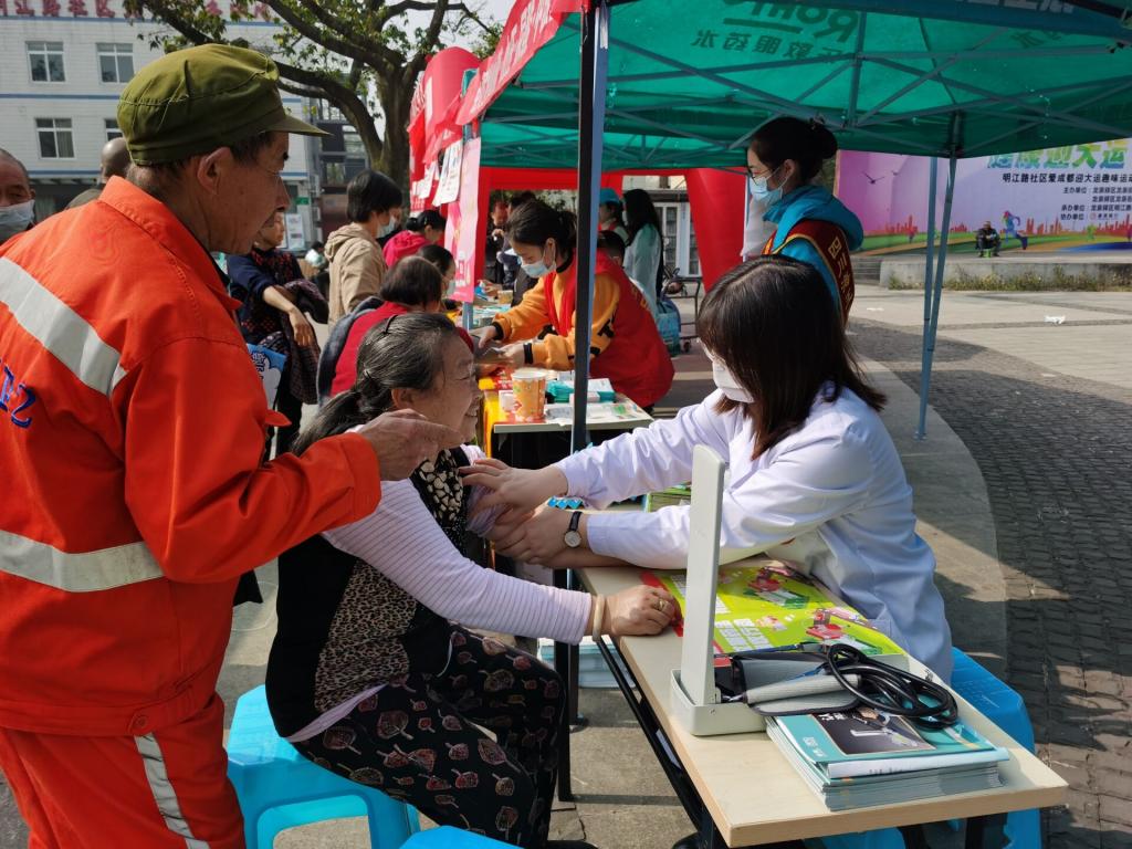 3月15日,药学系青年志愿者服务队联合四川海王星辰健康药房连锁有限公司于龙泉驿区明江路社区开展了安全用药指导进社区服务。志愿者们走访社区为居民宣讲过期药品的危害等相关知识、为社区居民提供测量血压、血糖、尿酸等免费健康检查,对老年人常见病、多发病的预防诊治、健康保健等知识进行宣传,并针对性地给予了饮食生活以及合理用药的建议。