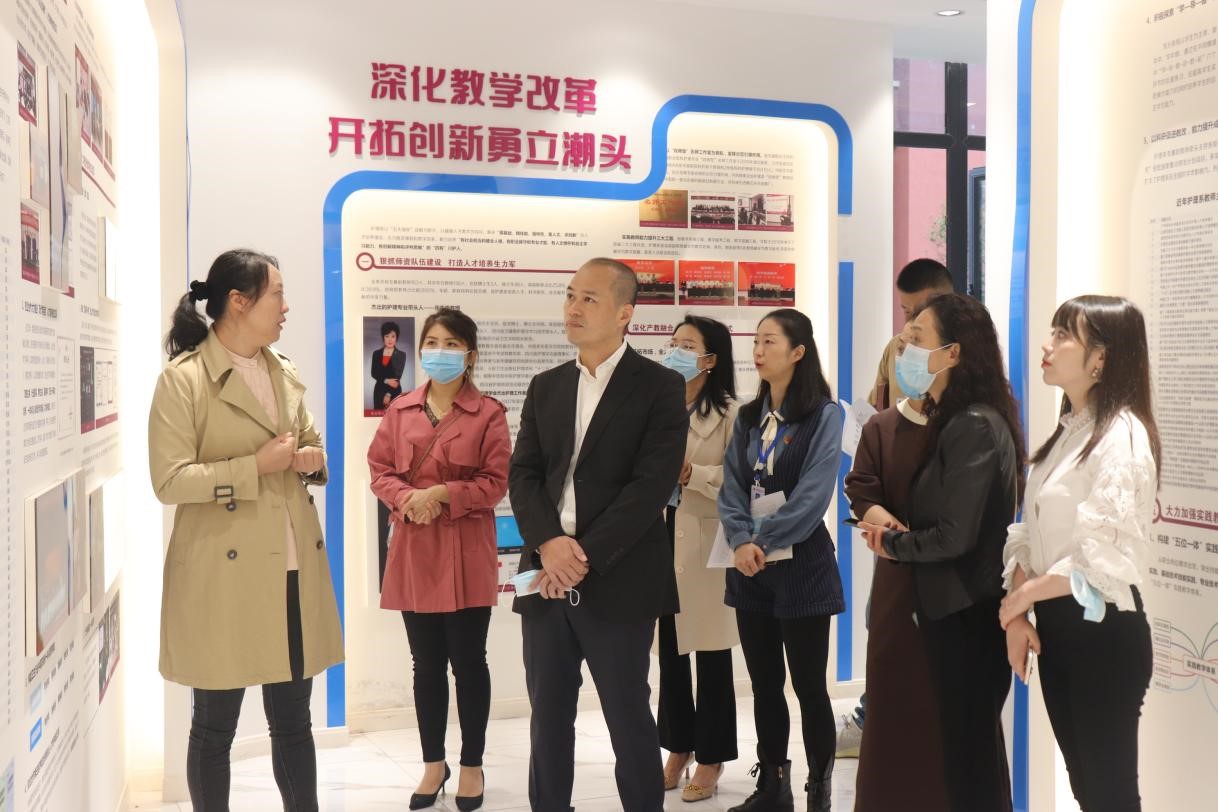健康培训中心副主任曲波(主持工作)、蒋虎、黄亚琴,护理系副主任苗泓丽陪同参观。