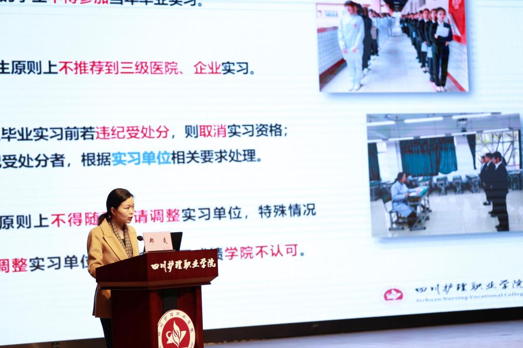 康复技术系副主任郑爽详细向同学们介绍学院教务、考务、实习管理以及1+X证书等方面的内容。希望同学们能志存高远,奋发图强。