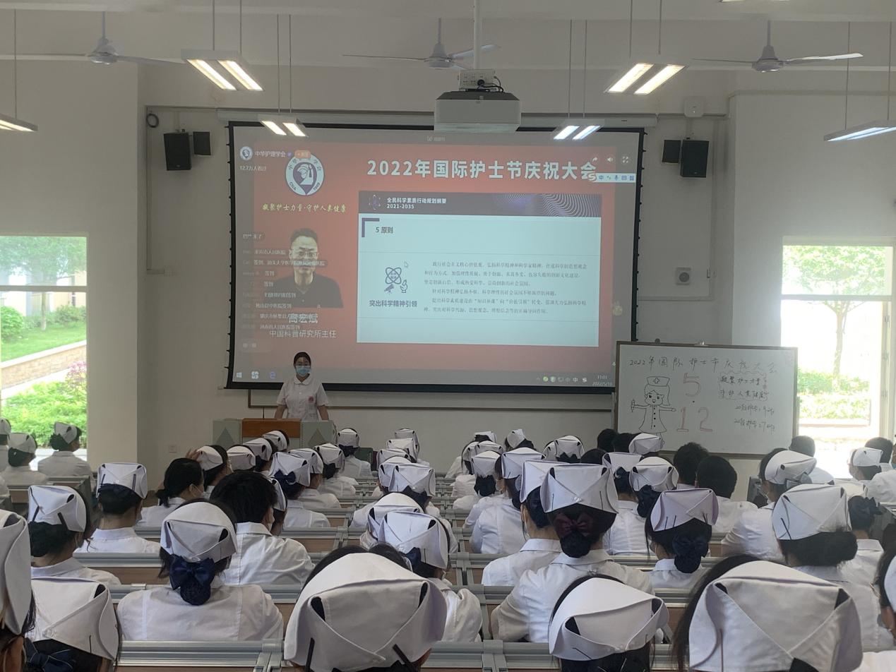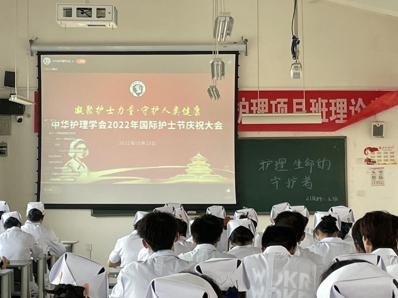 在第111个“5.12”国际护士节来临之际,为传承南丁格尔精神,赞扬广大护理工作者为守护人民群众生命安全和身心健康做出的贡献,学习护理前辈在抗击新冠肺炎疫情中连续奋战、不畏辛劳、甘于奉献的职业精神,2022年5月10日,护理系组织学生集中收看了中华护理学会2022年国际护士节庆祝大会直播。
