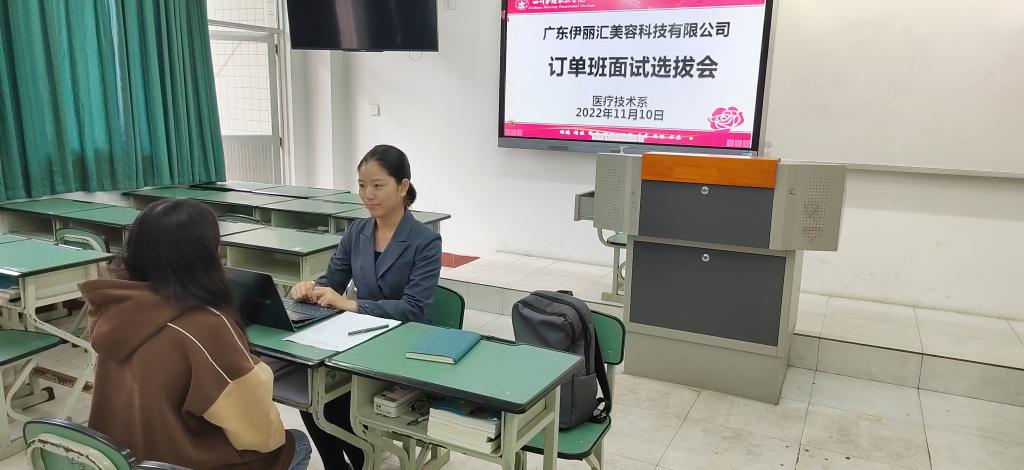 为推进医学美容技术专业与广东伊丽汇美容科技有限公司“定向人才培养培训”项目,11月10日,医疗技术系在成都校区开展“伊丽汇订单班”企业进校宣讲暨面试选拔会,2021级医学美容技术专业全体同学参加。