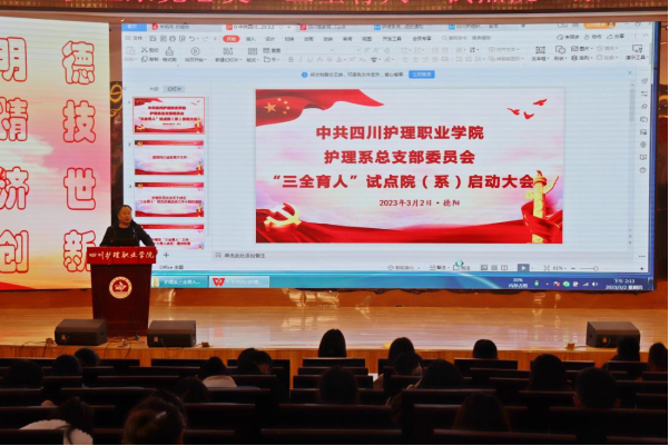 会议宣读了《四川省教育厅关于公布第三批“三全育人”综合改革试点高校和试点院(系)评选结果的通知》和《护理系党总支关于成立“三全育人”综合改革试点工作小组的通知》。解读了护理系“三全育人”工作的建设思路和“十大育人体系”建设标准。