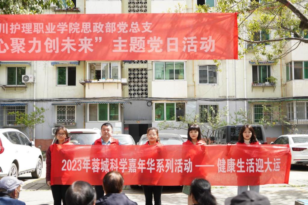 为全面学习宣传贯彻党的二十大精神和全国两会精神,充分发挥各基层党组织战斗堡垒作用,积极构建“资源共享、优势互补、互促共进”的党建新格局,4月6日,思政部党总支、药学系、康复技术系和医疗技术系师生代表,前往龙泉驿区保平小区,与保平社区党委共同开展“踔厉奋发启新程 凝心聚力创未来”主题党日活动暨2023年蓉城科学嘉年华系列活动——健康生活迎大运科普主题实践活动。