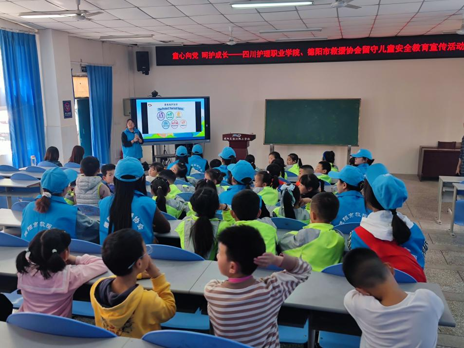 为帮助留守儿童树立安全意识,掌握安全知识,提高自我防护能力,4月10日,护理系辅导员党支部组织带领初心志愿服务队志愿者前往德阳市涪江路小学开展“童心向党 呵护成长”留守儿童安全教育宣传活动。