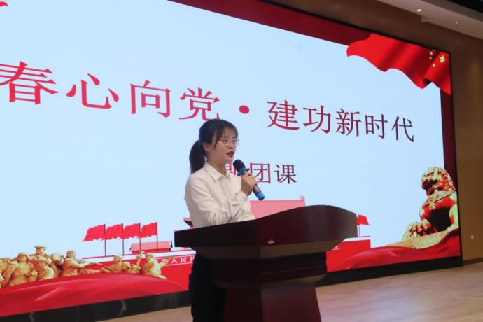 最后,康琴以“青春心向党·建功新时代”为主题向新团员授团课,并带领团员们共同学习《中国共产主义青年团章程》。